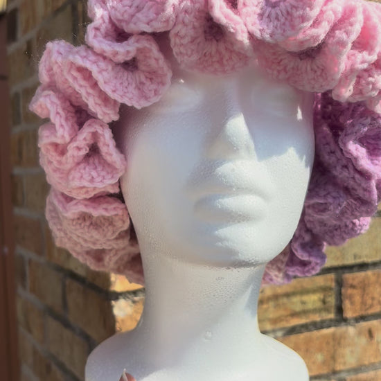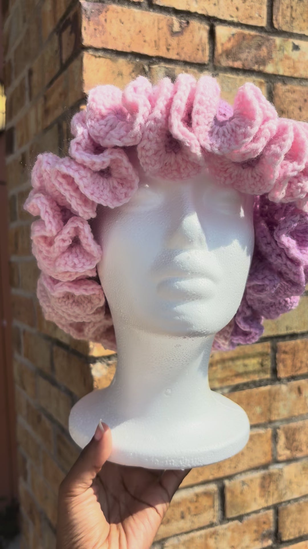 Pink & Lavender Dream Cap — Handmade Crochet Ruffle Brim Hat